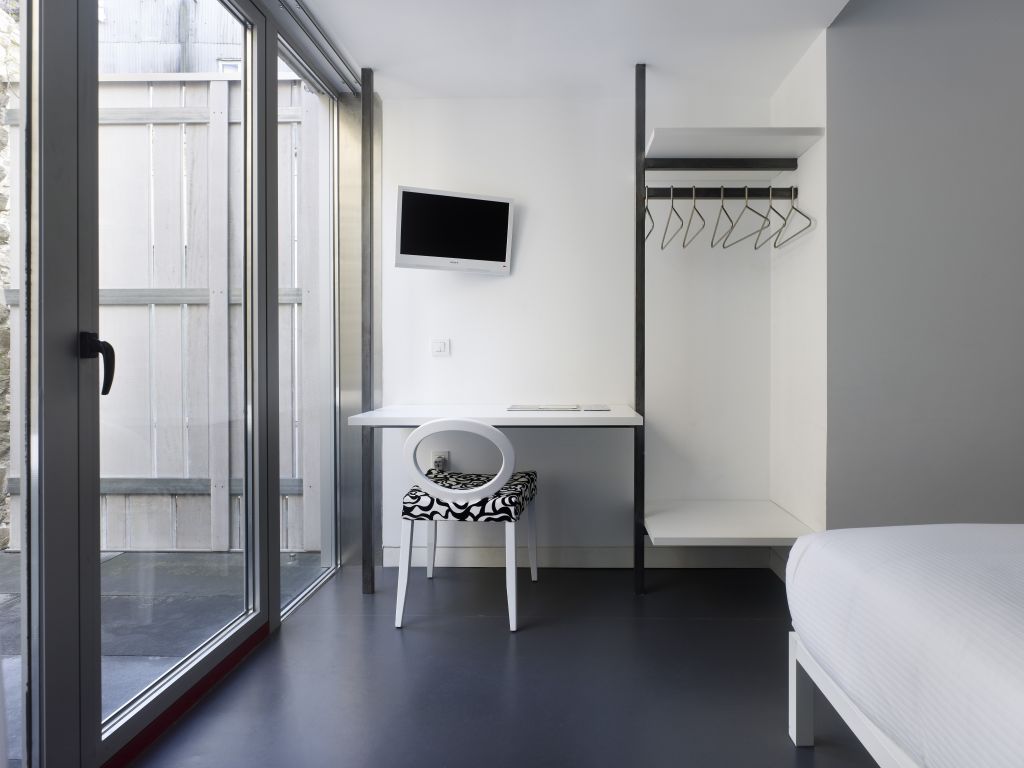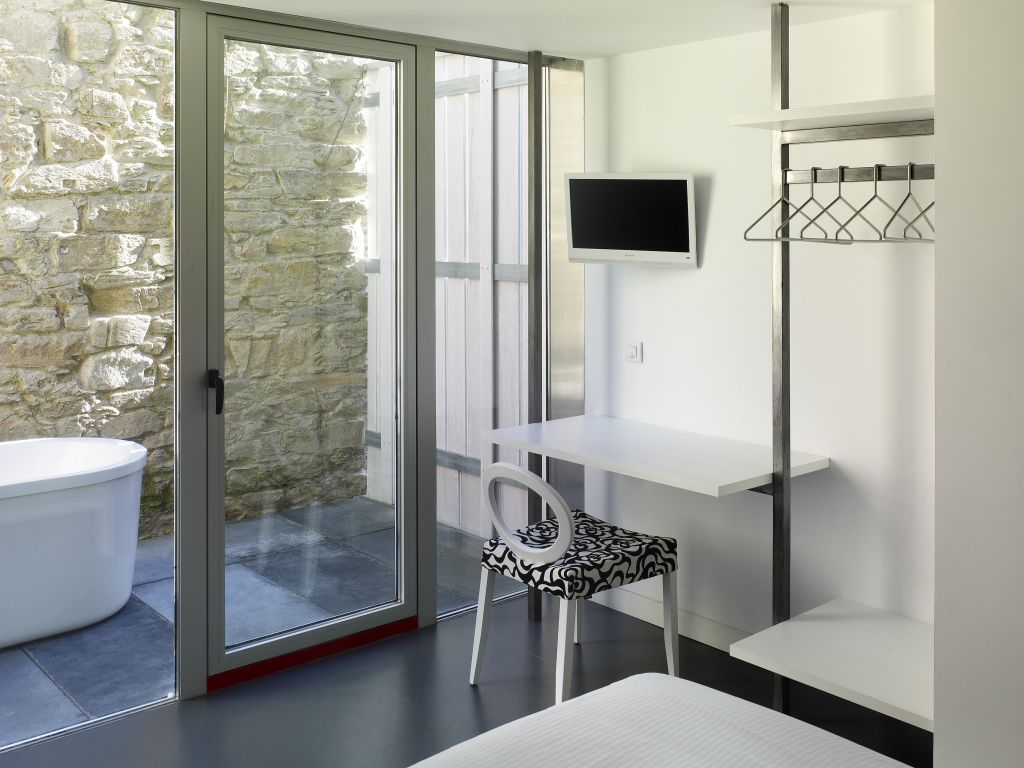Sin duda la habitación más impactante del hotel: abuhardillada, con una gran estructrura central: hacia un lado la cama con dosel contemporáneo y hacia el otro una gran bañera redonda. Perfecta para una ocasión especial, con su cuidada iluminación... Desde su ventana velux podrán ver parte de la ciudad y de las torres de la Catedral.